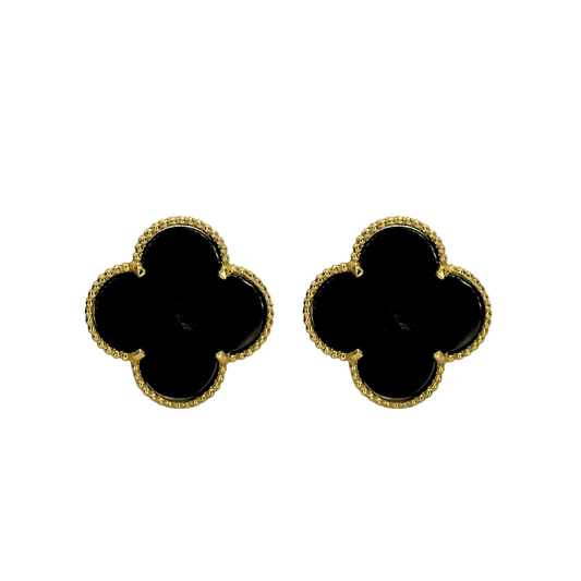 [B.FETHI™] Boucles d’oreilles avec trèfle noir en Or 18k