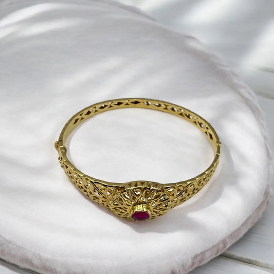 [B.FETHI™] Bracelet Traditionnel en Or 18k avec Pierre Rubis